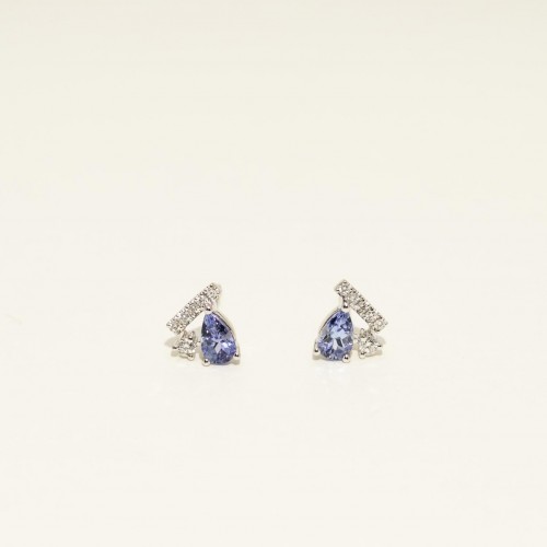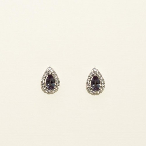 Pear Shape Created Alexandrite Stud Earrings in 14kt White Gold with Diamonds (1/7ct tw) CSER00901