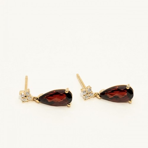 Pear Shaped Garnet Drop Earrings in 14kt Yellow Gold with Diamonds (1/10ct tw) CSER01122