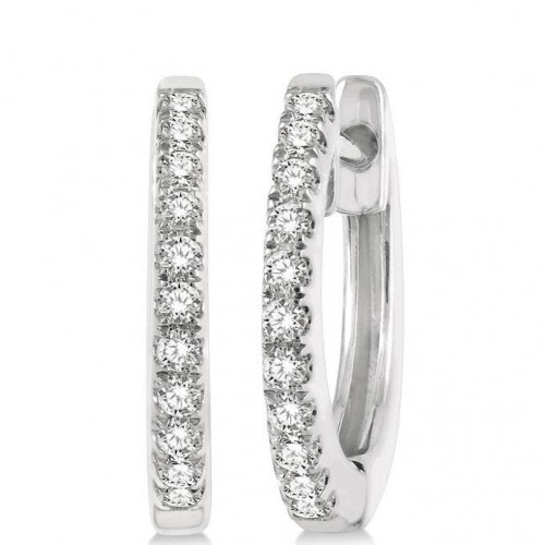 Huggie earrings are petite and look delicate and stylish on the ear. More than one huggie earrings can be worn at a time to decorate the ear. You can have any number of them in your collection as they can be mixed and matched with other earrings for the best looks. This pair of huggie earrings can be a great addition to one’s jewelry case. It features round cut diamonds that embellish the earring front. There is a total of 22 split prong set round cut diamonds adorning the huggie earrings, 11 diamonds on each earring. The huggie earrings are crafted in 14 karat yellow gold. Total diamond weight is 1/6 ctw.