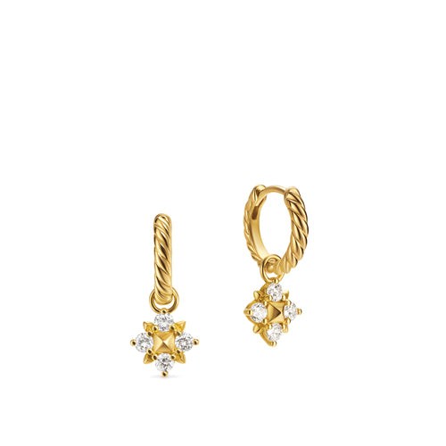 Petite Modern Renaissance Pyramid Drop Earrings in 18K Yellow Gold with Diamonds