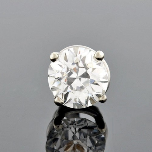 A gorgeous and classic pair of estate diamond studs! Each earring features a stunning old European Cut diamond set within a simple 4-prong platinum setting. The diamonds weigh a combined weight of 2.05ctw and both have F/G color and VS1-2 clarity. When worn, the facets catch the light beautifully, giving the diamonds a beautiful sparkle! Each diamond rests in a double wire box and has a secure platinum friction post on the back. A perfect pair of everyday diamond studs, they have universal appeal and would make a timeless gift for someone special!