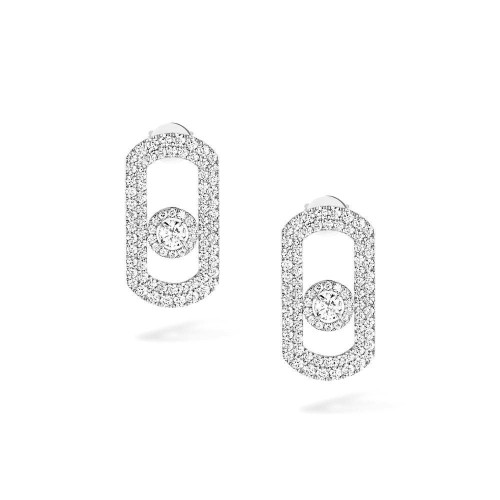 18 karat white gold Roberto Coin Tiny Treasures Wrap Earrings containing 0.14 carat total of diamonds.