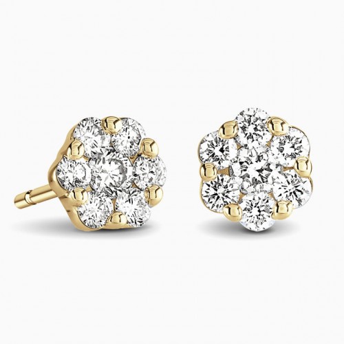 Round Brilliant Diamond Cluster Stud Earrings – 9ct Yellow Gold – 0.50ct