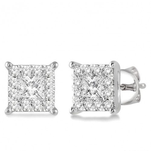 A brilliant pair of round cut diamond stud earrings, these are a must-have in every jewelry box. The earrings are suitable for any-time wear, be it a luncheon or a grand evening event. Each stud features a 1/2 ctw dazzling diamond, prong set in place quite prominently. Easy to wear push-back earnut closures secure the stud earrings, which are fashioned in a polished rhodium finish 14 karat white gold. Total diamond weight is 1 ctw.