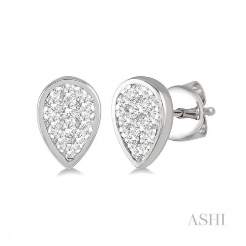 Captivate her with the dazzling and stunning look of these mesmerizing Lovebright diamond earrings. Beautifully crafted in luminous 14 karat white gold, these gorgeous diamond earrings feature 18 round cut diamonds, perfectly invisible set. These treats close with a secure clasp. Total diamond weight is 1/4 ctw.