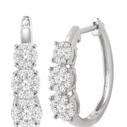 Celebrate your love with these exquisite diamond lovebright earrings. Beautifully crafted in 14 karat yellow and white gold, these earrings showcases three round frames embellished with array of dazzling round cut accented diamonds. Brilliant 54 round cut diamonds are finely set in invisible settings. These treats closes with a secure clasp. Total diamond weight is 3/4 ctw.