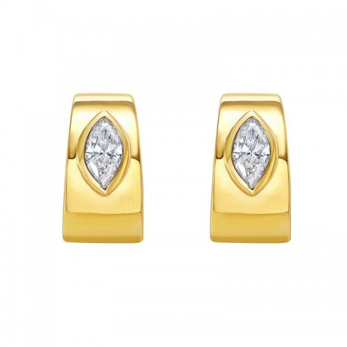 Ruchi New York, 18K Yellow Gold Emerald Cut Bezel Set Diamond Hoop Earrings 16 Diamond= ~1.67 Ctw