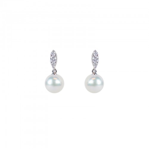 Diamonfire Clear Cubic Zirconia White Shell Pearl Contemporary Princess Cut Earrings E6722