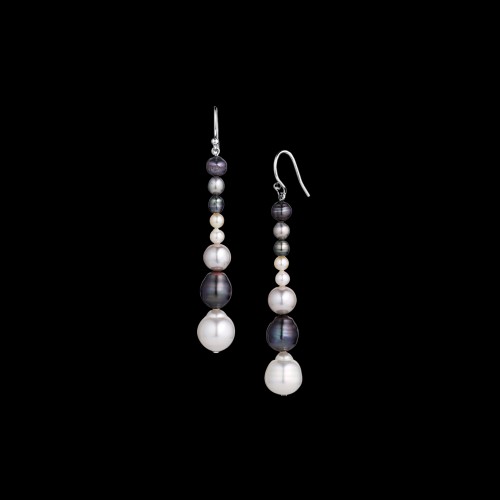 14K White Gold hoop earrings featuring 3.5-4mm Akoya round pearls from the Fink’s Jewelers Sabel Collection. Hoop earrings measure 1.75″ in diameter.