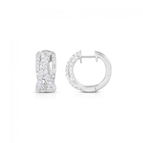 Sabel Collection Yellow Gold Double Diamond Row Huggie Hoop Earrings