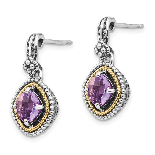 Shey Couture Sterling Silver with 14K Accent Antiqued Cushion Amethyst Post Dangle Earrings
