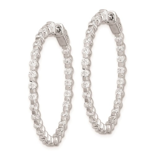 Sterling Shimmer Sterling Silver Rhodium-plated 52 Stone 2.3mm CZ In and Out Round Hinged Hoop Earrings