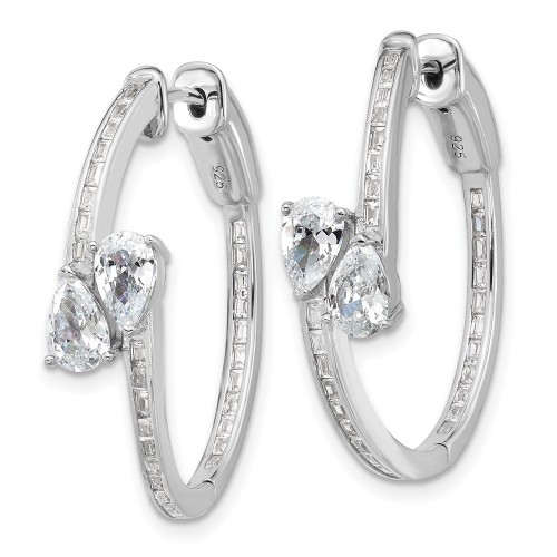 Sterling Shimmer Sterling Silver Rhodium-plated CZ 62 Stone In and Out Hinged Hoop Earrings