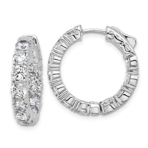 Sterling Shimmer Sterling Silver Rose-tone Rose Gold-plated 40 Stone 2.25mm CZ In and Out Round Hinged Hoop Earrings