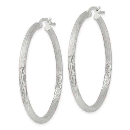Sterling Silver 2.5mm Polished/Satin D/C Hoop Earrings