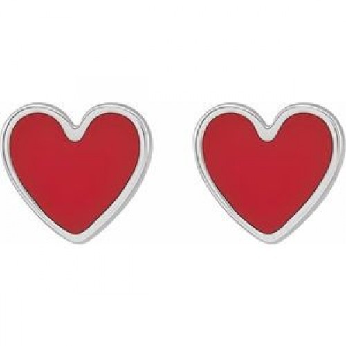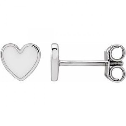 Sterling Silver 5.9×5.5 mm Red Enamel Heart Earrings First