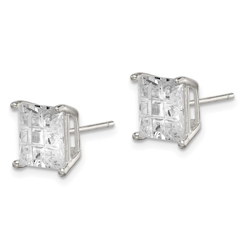 Sterling Silver 8mm Square Laser-cut CZ Basket Set Stud Earrings
