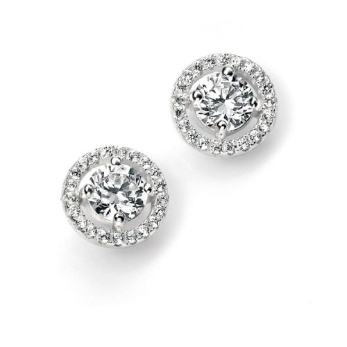 Sterling silver and cubic zirconia huggie earrings.