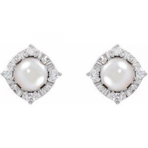 Sterling Silver Cultured Freshwater Pearl & .08 CTW Natural Diamond Halo-Style Earrings First