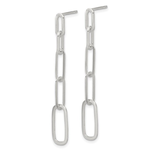 Sterling Silver E-coated Paperclip Link Post Dangle Earrings