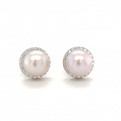 Sterling Silver Pearl Centre with Starbust Halo Earring & Pendant Set