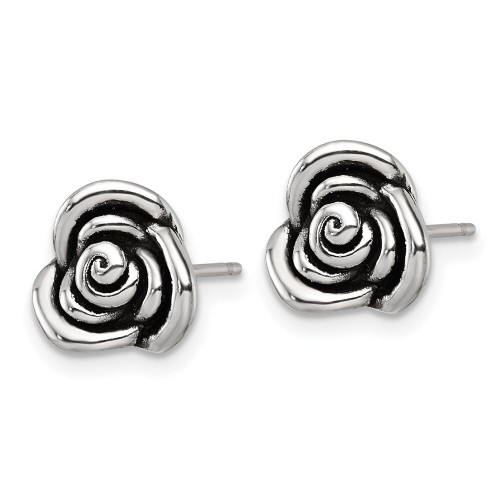 Sterling Silver Polished and Antiqued Rose Post Earrings