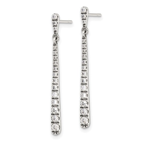 Sterling Silver Polished & Antiqued Graduated CZ Post Dangle Earrings