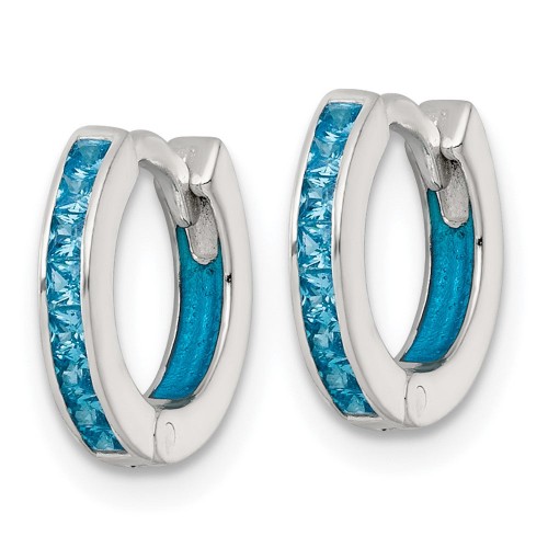 Be the first to review “Sterling Silver Polished Blue CZ and Blue Enamel In and Out 13mm Hinged Round Hoop Earrings” Cancel reply