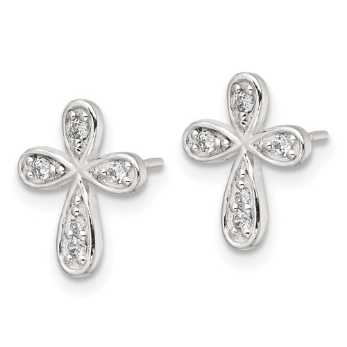 Sterling Silver Polished CZ Cross Post Earrings