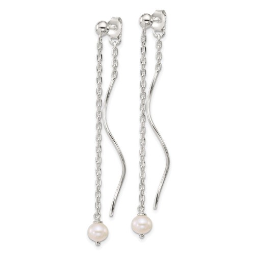 Sterling Silver Polished Fancy Freshwater Cultured Pearl on Chain and Twist Dangle Post Earrings
