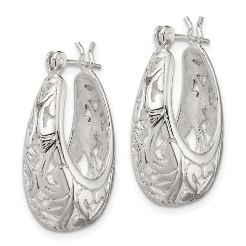 Sterling Silver Polished Filigree Oval Hoop Earrings