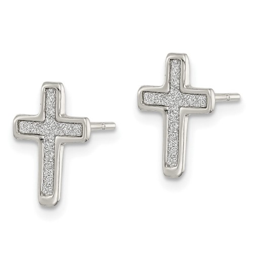Sterling Silver Polished Glitter Infused Latin Cross Post Earrings