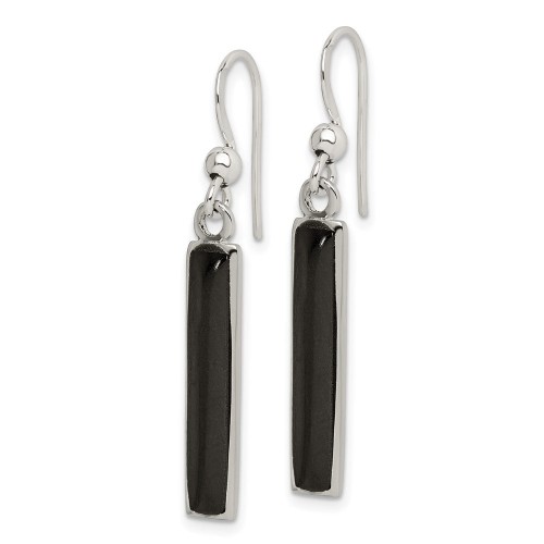 Sterling Silver Polished Onyx Bar Dangle Earrings
