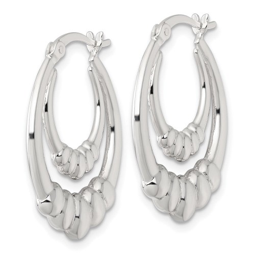 Sterling Silver Polished Scalloped Double Oval Hollow Hoop Earrings