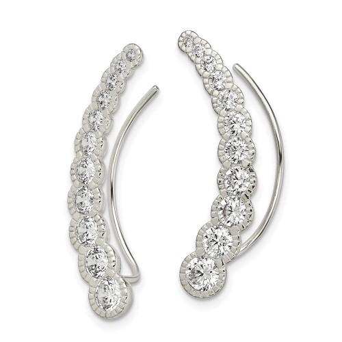 Sterling Silver Polished & Textured Graduated CZ Ear Climber Earrings