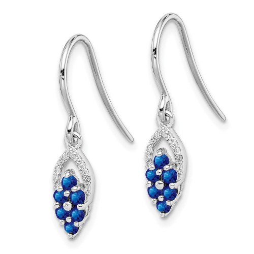Sterling Silver Rhodium Diamond & Sapphire Shepherd Hook Earrings