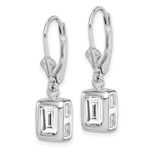 Sterling Silver Rhodium Plated 7×5 Emerald Cut CZ Leverback Earrings