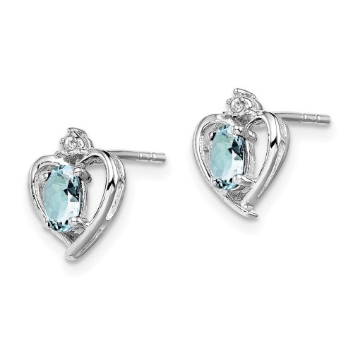 Sterling Silver Rhodium-plated Aquamarine & Diam. Earrings