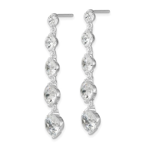 Sterling Silver Rhodium-plated Clear CZ Journey Dangle Post Earrings