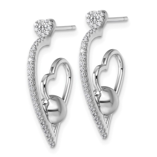 Sterling Silver Rhodium-plated CZ Polished Heart and Bead Post Earrings