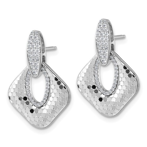 Sterling Silver Rhodium-plated CZ Polished Textured Doorknocker Dangle Post Earrings