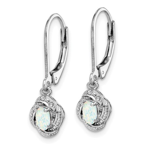 Sterling Silver Rhodium-plated Diam. & Created Opal Earrings