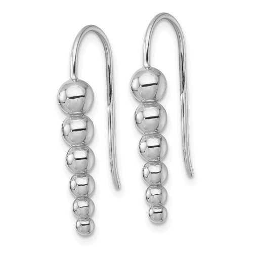 Sterling Silver Rhodium-plated Graduated Beaded Shepherd Hook Earrings
