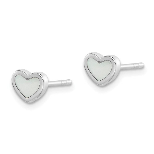 Sterling Silver Rhodium-plated Mother of Pearl Heart Post Earrings