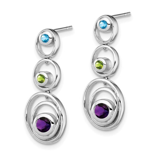 Sterling Silver Rhodium-plated Peridot Blue Topaz and Amethyst Earrings