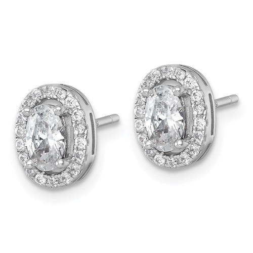 Sterling Silver Rhodium-plated Polished 9.5 x 7.0mm Oval CZ Halo Post Earrings