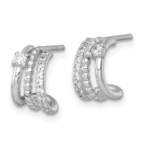 Sterling Silver Rhodium-plated Polished Beaded CZ Post C-Hoop Earrings