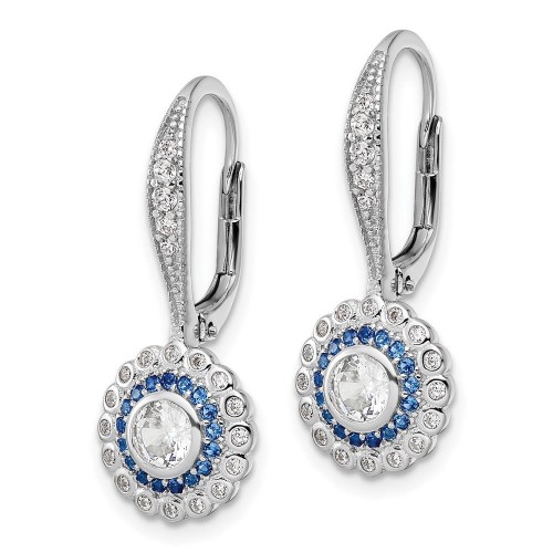 Sterling Silver Rhodium-plated Polished Blue & White CZ Leverback Earrings