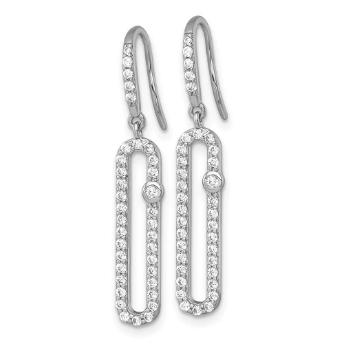 Sterling Silver Rhodium-plated Polished CZ Elongated Link Dangle Shepherd Hook Earrings