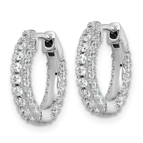Sterling Silver Rhodium-plated Polished CZ Round Hinged Hoop Earrings